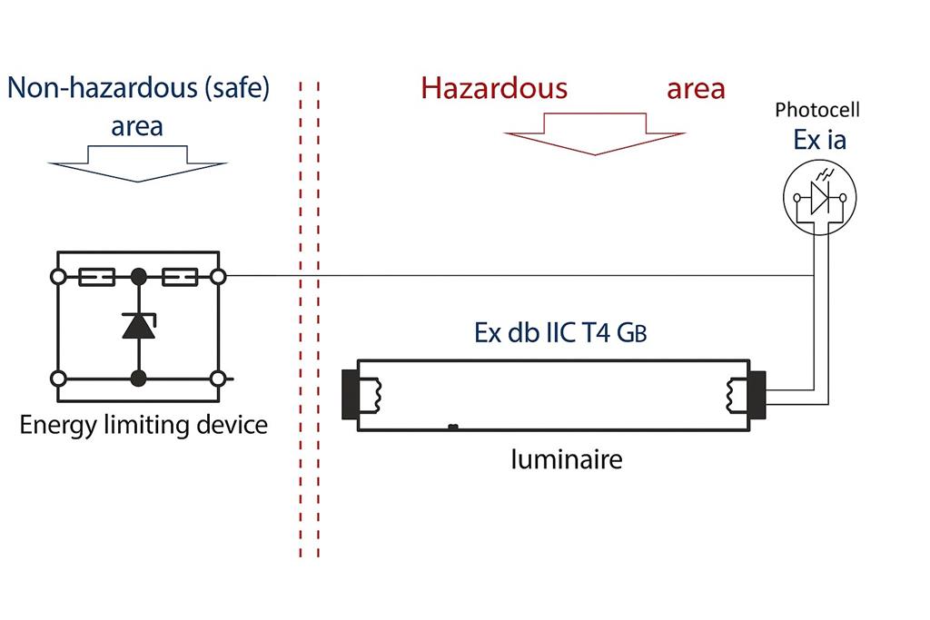 For gas atmospheresEx db [ib Gb] [pxb Gb] IIC T4 GbFor dust atmospheresEx tb [ib Db] [pxb Db] IIIC T135°C Dba control box (unit) with the protection of Ex pxb Gb (associated equipment) together with a barrier (associated apparatus) which are placed inside an Exd enclosure in an hazardous area and connected to a Exp container (Ex equipment) which has been installed in an hazardous area too. |