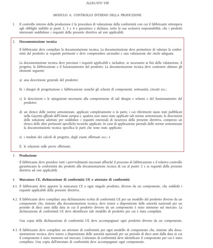 2-3- la registrazione ed emissione dell'avviso di ricezione (A.R) della documentazione tecnica, con la validità di almeno 10 anni, sotto l'accreditamento del Ente Nazionale di Accreditamento Italiano (ACCREDIA) per il/i tipo/i di prodotto e modelli pertinenti specificati nel preventivo, secondo l’Allegato VIII, punto 2 della direttiva UE 2014/34/UE.