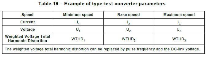For motors in Type of Protection “e” that have been type tested with a converter, the rated motor current, Weighted Voltage Total Harmonic Distortion (WTHD), or pulse frequency and DC-Link voltage of the converter used for the type testing to allow the selection of a comparable converter.